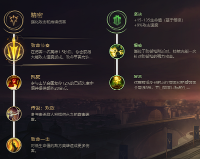 主符文建议使用致命节奏,因为在无限火力模式中做出了许多的攻速装备,并且该模式里面还有相应的攻速加成,使用致命节奏符文可以突破相应的2.5攻速上限,从而大幅提升塔姆的输出能力,副符文可以选择坚决系,将里面的爆破符文点出来,这样就可以更加快速的偷塔了,只要不对上提莫的话其他还是非常好对付的。