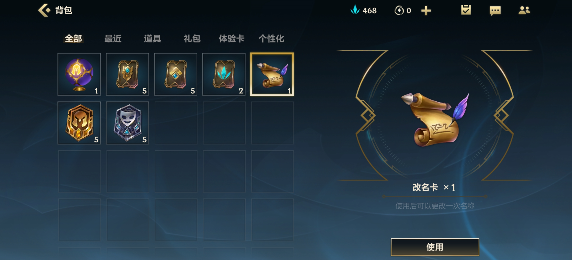方法一:玩家在获得改名卡之后,可以直接点击使用,或者去背包中使用也是可以的。