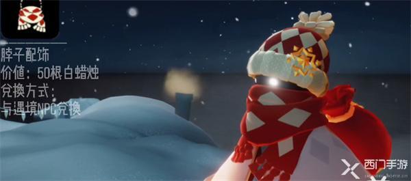 3、围巾:第三件是脖子的配饰围巾,配合着帽子需要50白蜡烛,在遇境和NPC进行兑换,围着围巾在风雪中露出眼睛一眨一眨的真可爱;