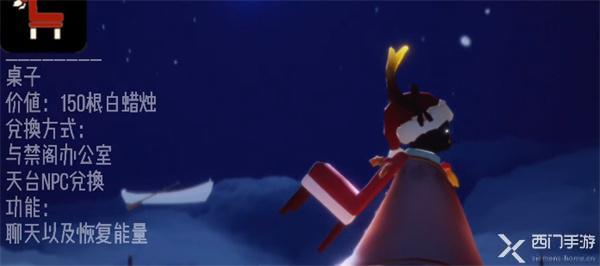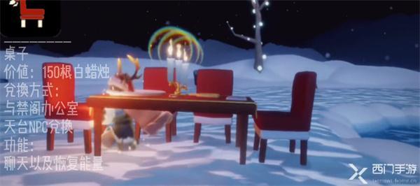 8、圣诞桌子:使用150根蜡烛在禁阁的天台NPC兑换,主要的功能是聊天恢复能量,就是太贵了;
