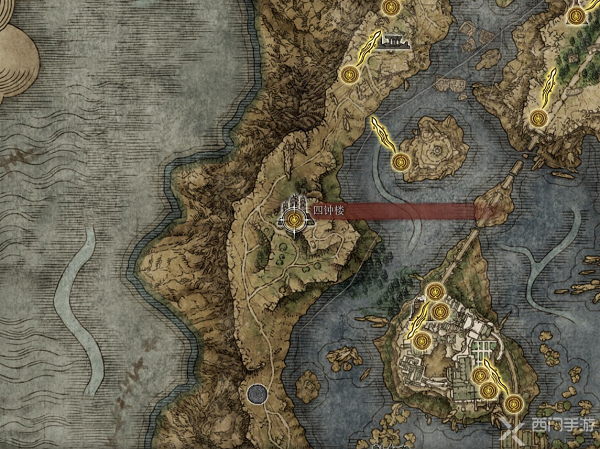 ①来到四钟楼山顶,开启宝箱获取魔石剑钥匙。接着从四钟楼赐福下去的方向第一个塔(图2),使用魔石剑钥匙传送到候王教堂;