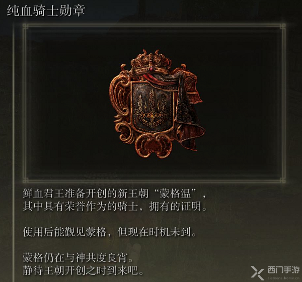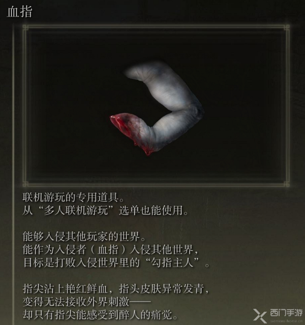 4、线上模式使用溃烂手指入侵其他玩家3次后找梵雷对话(判定机制应该是消耗掉3个溃烂血指,所以胜负、掉线、断指刀返回都可以),选择愿意成为骑士,获取鲜血君王的立誓布;