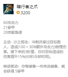 雷克塞在无限火力中依然建议通过打野发育,上面的核心装备就是暗行者,这是一件非常适合雷克塞的装备;