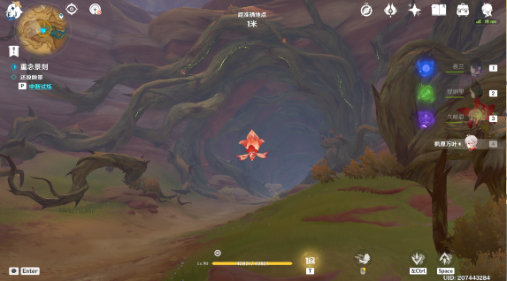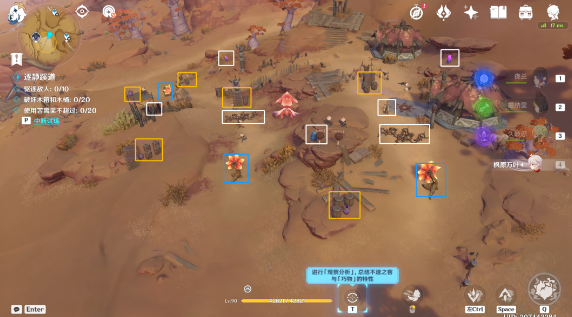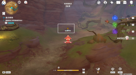 2、斯露莎投掷「苦离果」,命中「巧物」,驱逐所有丘丘人,开启试炼,往地图的西南方向看;