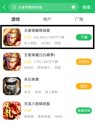 6、体验服的资格也是需要进行预约的,首先在搜索框的位置输入需要申请资格的游戏,如:王者荣耀体验服;