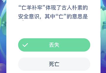 亡羊补牢体现了古人朴素的安全意识,其中亡的意思是-蚂蚁庄园今日答案最新