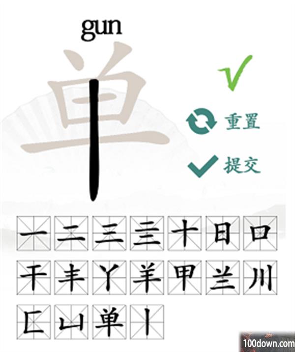 一、二、三、亖、十、日、口、干、丰、丫、羊、甲、兰、川、匚、凵、单、丨。