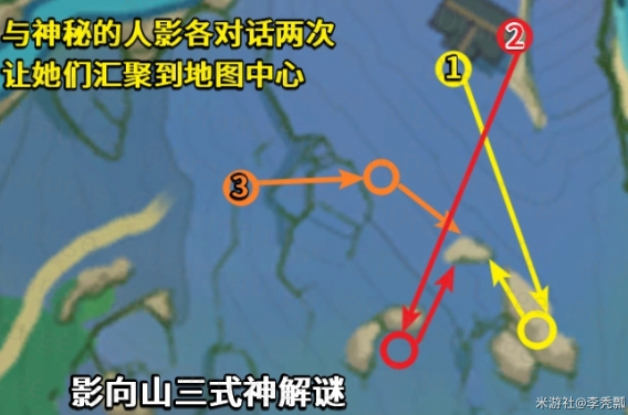 解谜攻略:与三个谜样的人影各对话两次,让她们汇聚在狐狸雕像处。