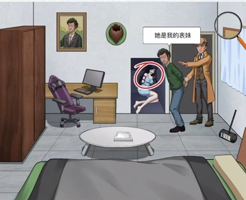 3、在茶桌下面的传票,地上的偷款,墙上的照片,点击靠门口的那个强,里面柜子里的女人。