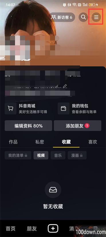 2.然后在我的页面中点击右上角的【三横】图标;