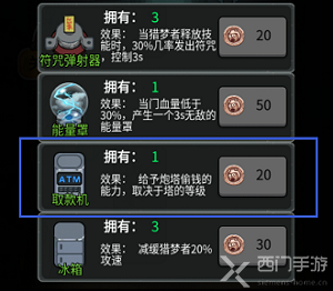 4、取款机:在商店的位置购买取款机可以通过摆放炮台的方式从而偷取金币,这样也可以快速提升门的等级;