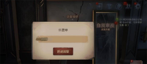 1、进入游戏之后,操控角色走到镜子的位置,在镜子左侧会有一个裂缝,靠近会有【调查裂缝】;