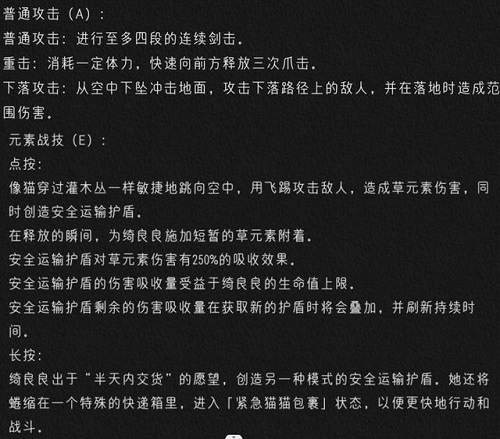 普攻可进行4次连续剑击,重击可向前方释放3次抓击,下落时会造成范围伤害。