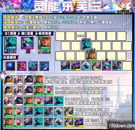 阵容组成:佐伊、安妮、乐芙兰、阿利斯塔、娑娜、迦娜、费德提克、索拉卡