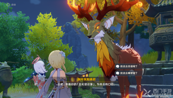 5、继续对话,问削月筑阳真君要找谁传信,之后真君说了三个地方:望舒、叠山、留云,这三个地方分别是三个任务,到此这个惊变任务就完成了,玩家要去做三个小任务。