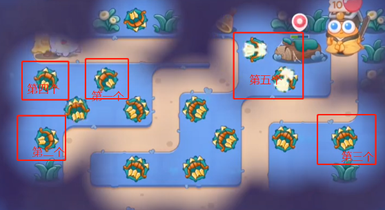 2、下面两个先清理附近的道具,清理完都放上多重箭,放上炮塔地图就会亮了;