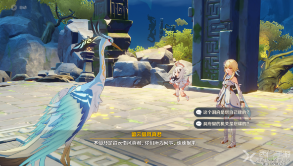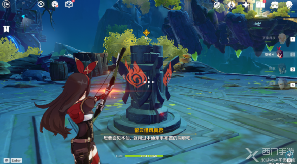 8、进入洞府,来到这个火石碑前,就可以触发与留云借风真君的对话,仙人想让我们闯过仙府(后面有个声望任务也需要再闯一次);