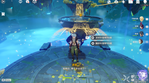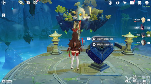13、三次挑战成功之后,对面的风场就自动开启了,然后玩家要回到上一个旋转机关的位置,逆时针旋转九十度,然后向前右转到达风场所在的平台;