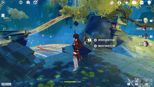 11、到达下一个平台之后,会遇到几个丘丘人,击败后这边的方形石柱也可以顺时针旋转了;