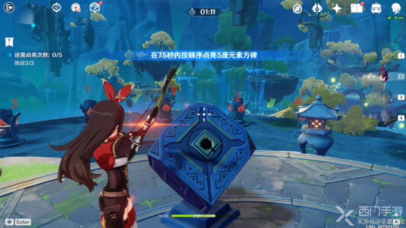 第三次:需要在75秒内按顺序点亮五个火石碑