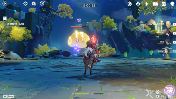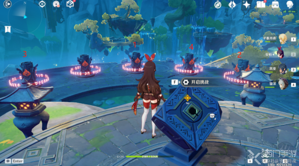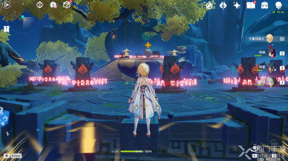9、玩家使用火元素角色激活火石碑后,就开启了挑战,需要在两分钟内击败十个史莱姆;