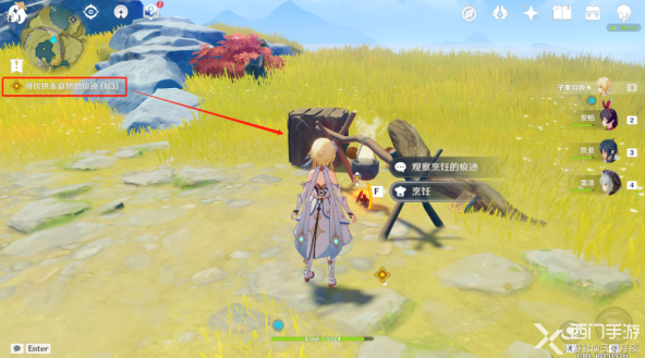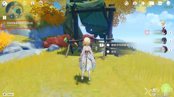 3、然后玩家跟着任务指引寻找三处烹饪做食物的地方,旁边还能找到一些做食物的材料,其中: