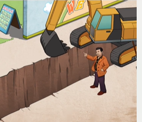 7、最后一个小朋友就可以用锤子砸强哥的头,在他身上拿出挖掘机的钥匙,小朋友可以坐在里面过来。