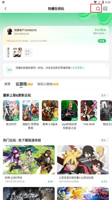 3.在快爆在线玩的页面中点击右上方的【搜索】图标;