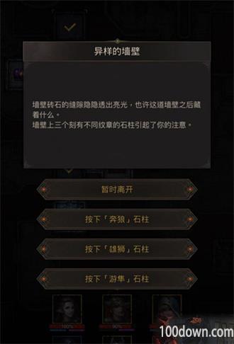 5、此时墙壁上会出现三个刻有不同纹章的石柱。
