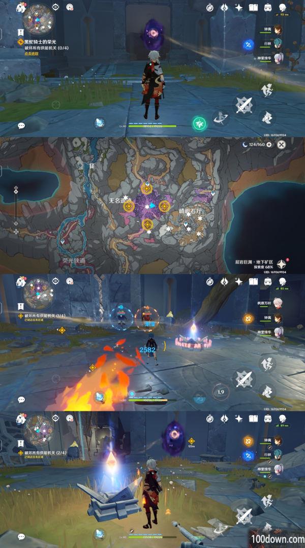 前往图中标出的四个机关位置,击败机关旁的深渊法师后,攻击破坏机关