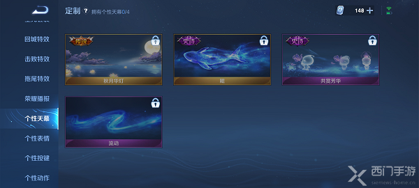 3、点击后即可进入个性天幕界面,当前一共有四款个性天幕可以使用,每款个性天幕的获取方式都不同;