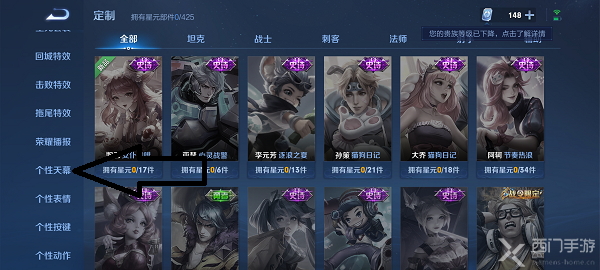 2、进入定制功能界面后在这里可以设置各类皮肤以及特效效果,找到其中的【个性天幕】点击;
