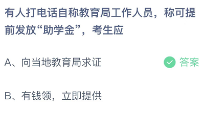 有人打电话自称教育局工作人员称可提前发放助学金,考生应-蚂蚁庄园12月25日答案