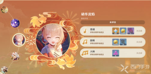 3、演奏过程中,旅行者们需要在音符下落至判定线位置时触击对应判定键,根据触击时机的不同,将获得不同等级的得分;