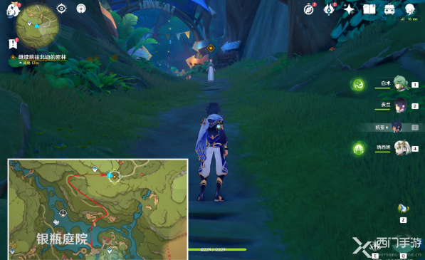 2、开启任务之后沿着道路往前走,前往北方的密林,从前方的入口进入游园;