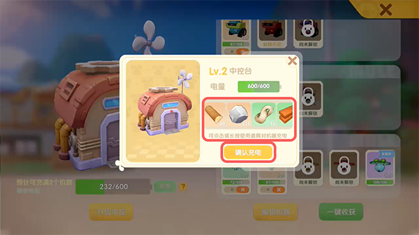 4.长按可使用的充电材料,选择后点击【确认充电】;
