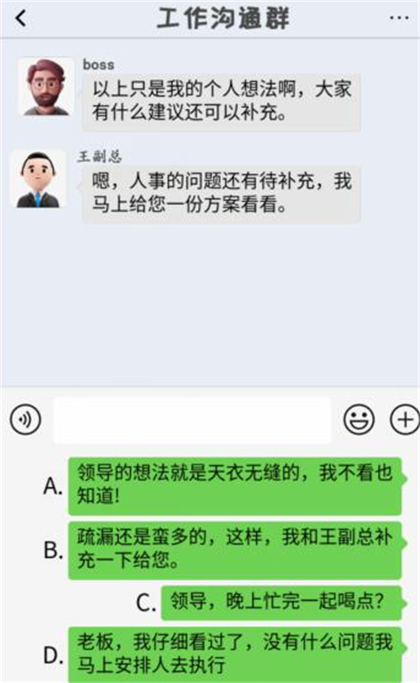 在任务时间内正确回答老板提出的问题即可过关。
