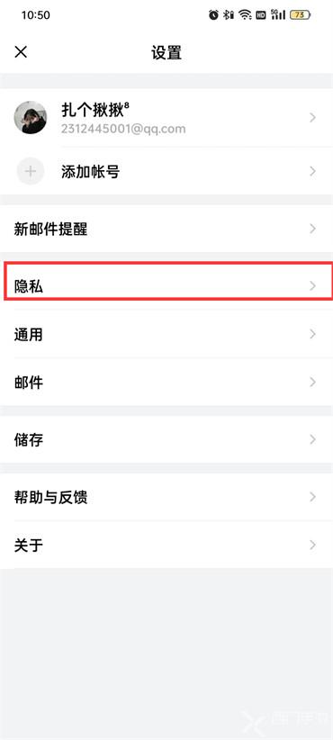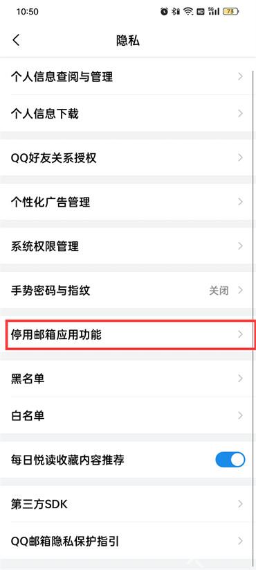 4.进入到隐私的页面中点击【停用邮箱应用功能】;