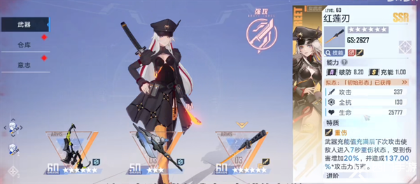 质变的一把武器,在游戏里面满星输出的话可以和T0比肩,如果在游戏里面和黑鸦以及超电两把武器结合的话是版本最强之武器,并且输出非常的强势,三星到六星都是可以质变的。