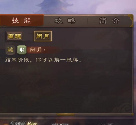 闭月--结束阶段,你可以摸一张牌。
