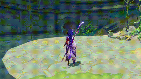 在此状态下,雷电将军将使用刀进行攻击,并将普通攻击的伤害转化为无法被覆盖的雷元素伤害,也就是雷附魔,并在攻击到敌人时,为队伍中所有角色恢复元素能量,每一秒至多通过这种方式恢复一次元素能量,在持续时间内最多触发五次。