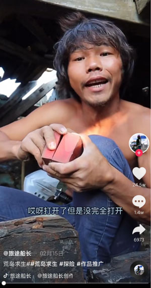 打开了但没完全打开梗是一个抖音的视频冒险博主【@旅途船长】的一句视频中的固定的台词视频套路。因为在每期视频开始,博主都会拿着一个上了锁但是没钥匙的破旧小木盒,然后用力打开一条缝,再尝试打开,但是还是打不开,然后就会因为“肚子饿了”等各种无语的原因中途去做其他的事情,就比如吃几条鱼,真是吊足了观众胃口,以至于一个盒子打了十几个视频都没打开,最近的一期他揭秘了,我看到了,是两个杏仁核,好了可以取关了。