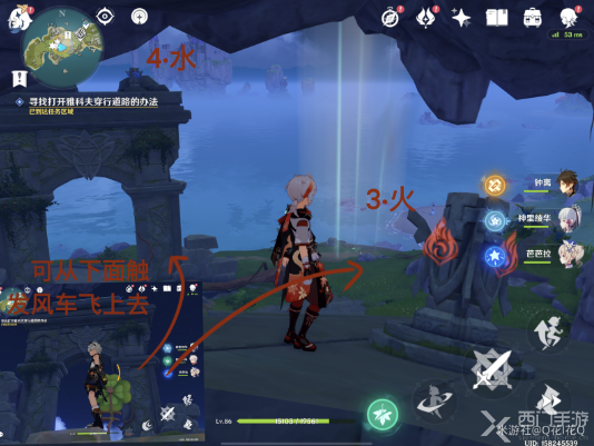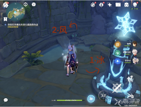 3、按照下图顺序和位置依次点亮冰风火水方碑;