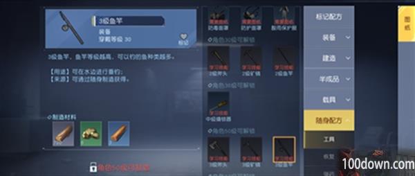 2、进入【随身制造】页面后,找到鱼竿选项;