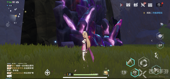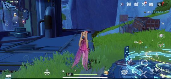 2、到达之后,玩家可以看到有彩色的大石头,靠近还有结界,在最左侧会有一个闪光点;