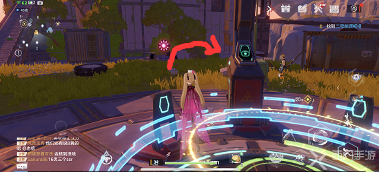 4、之后传送到实验室折跃门的位置,传送过去之后往周围看,可以看到有一个红色的装置;