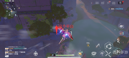 5、玩家要从这个红色的装置崖边往下跳,使用喷气背包往左侧飞,然后跳到一个平台上,如下图: