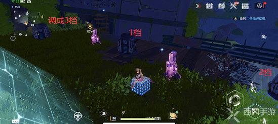 10、这里会有三个能量装置,背对彩色大石头从左往右数,把这三个装置分别调成3档、1档、2档;
