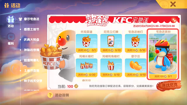 摩尔庄园手游宅急送箱子怎么获得-宅急送箱子获取攻略摩尔庄园手游宅急送箱子获取攻略,在摩尔庄园手游中,宅急送箱子是活动兑换礼物之一,需要在和KFC联动活动中兑换获得,那具体怎么获得呢,下面就和小编一起来看看摩尔庄园手游宅急送箱子获取攻略!时间:2023-10-17 -