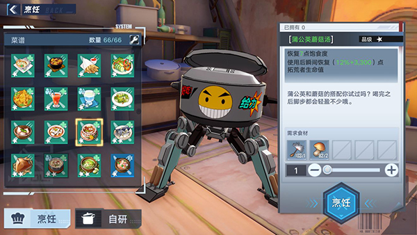 | 食材介绍:离开母体以后,它就会变成可以落地生根的种子。 | 用途:制作蒲公英蘑菇汤。 |